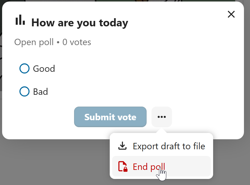 Closing poll is possible from the poll dialog.