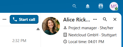 If a user becomes unavailable and set an out-of-office status in Personal settings > Availability, you will find additional information in this conversation, such as provided description, absence date, or their replacement person.