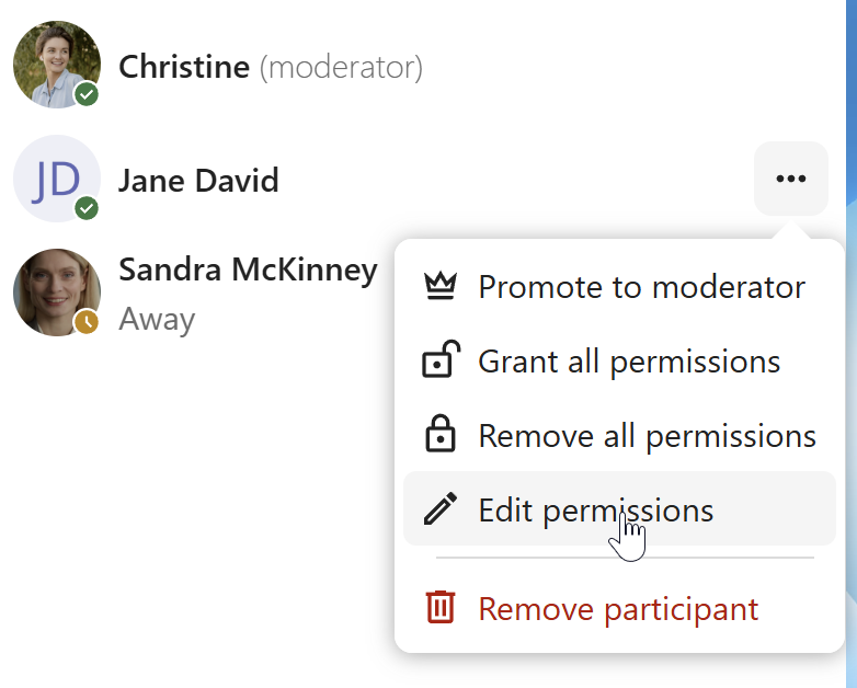 In the participants list, select the user or guest you, and click Remove participant.