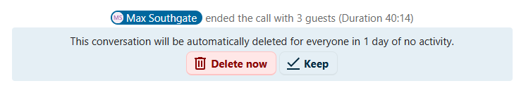 A group conversation can be shared with a public link, so guests can join a chat and a call. It can also be opened to registered users (or users from ‘Guests’ app), so they can discover and join this conversation.